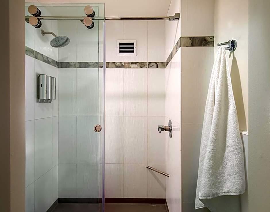 This air-conditioned room i have a in-room bathroom ncludes boutique bath amenities and toiletries, separate vanities with lighted make-up mirrors and a work desk with an ergonomic chair. Includes a flat-screen TV, a microwave and a refrigerator.